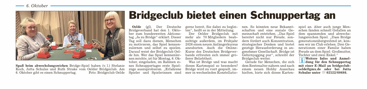 Berichte in "Die Glocke" und "Oelder Schaufenster" zum Aktionstag "JA zum Bridge"